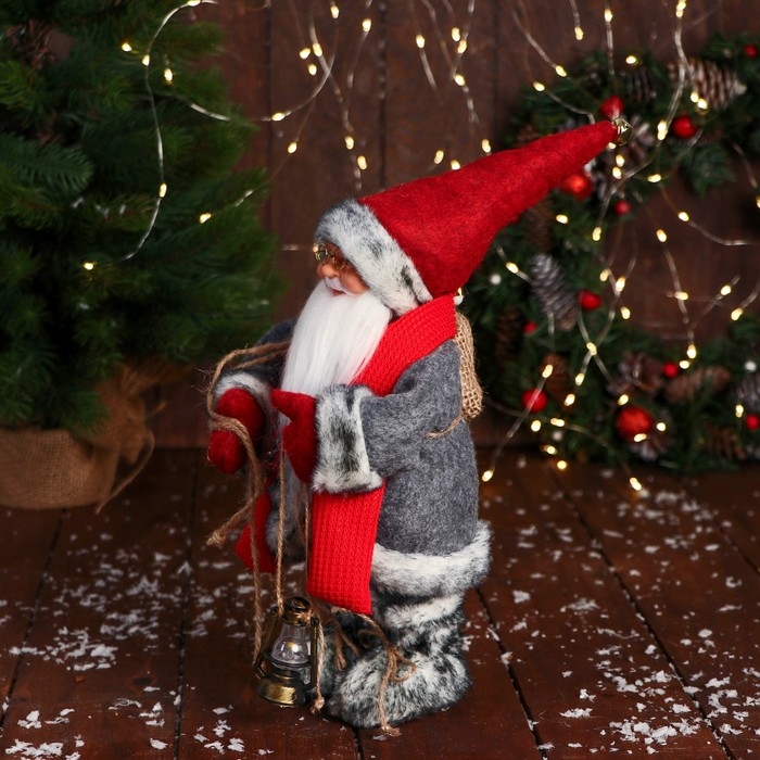 Дед Мороз "В длиной шубе, с фонариком" 28 см, красный