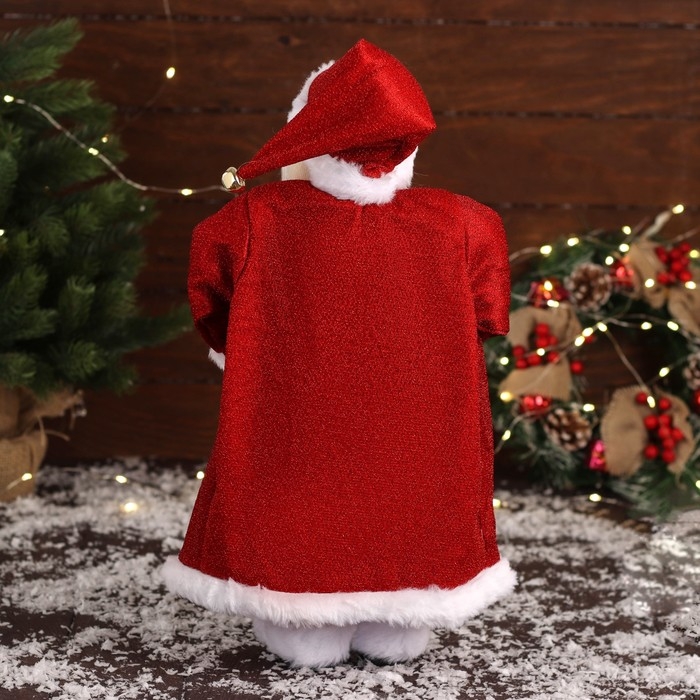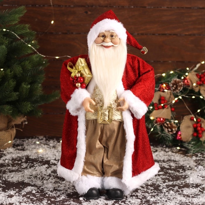 Дед Мороз "В колпачке, подарком и ягодами" 46 см, красный