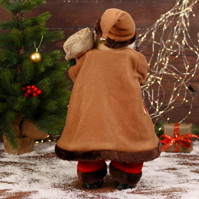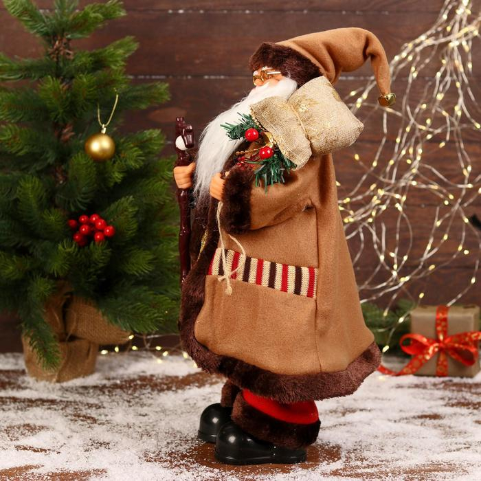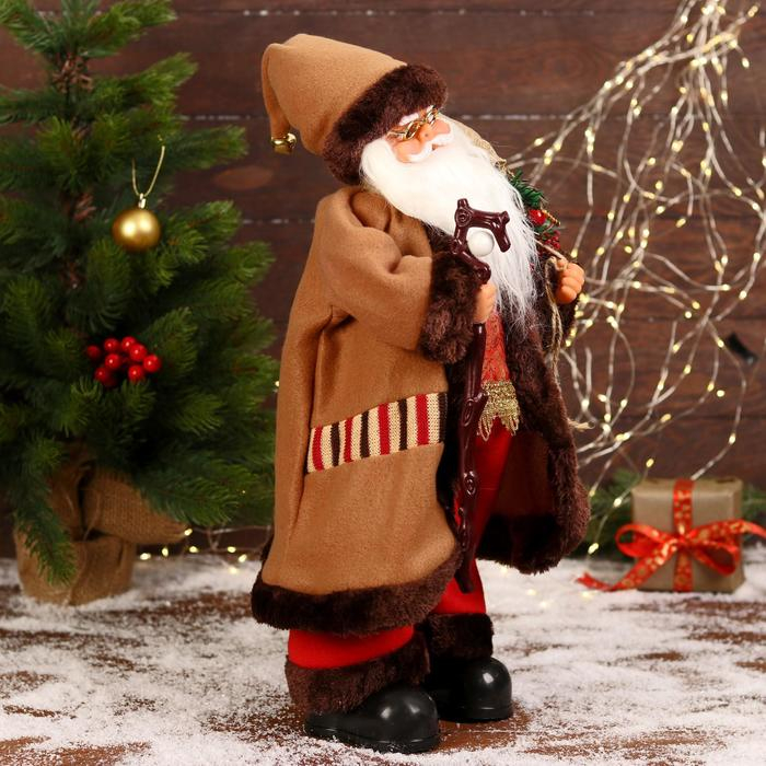 Дед Мороз "В коричневой шубке, с посохом" двигается, 20х50 см