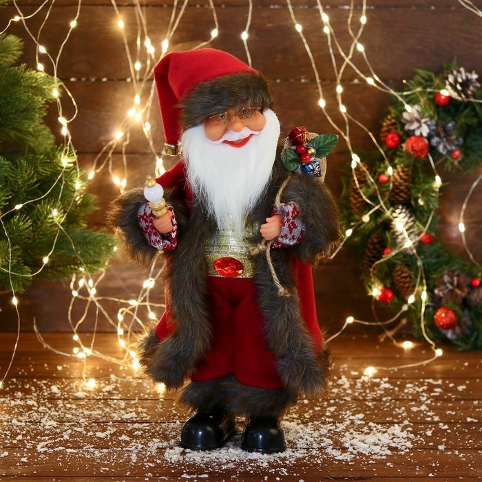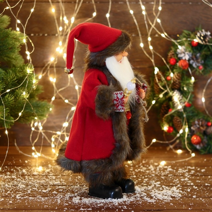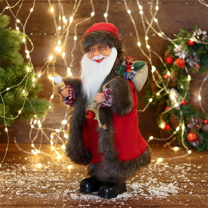 Дед Мороз "В костюме с узорными рукавами" двигается, с подсветкой, 40 см, красный