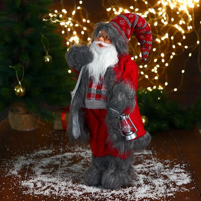 Дед Мороз "В красном клетчатом свитере, с фонариком" 23х45 см