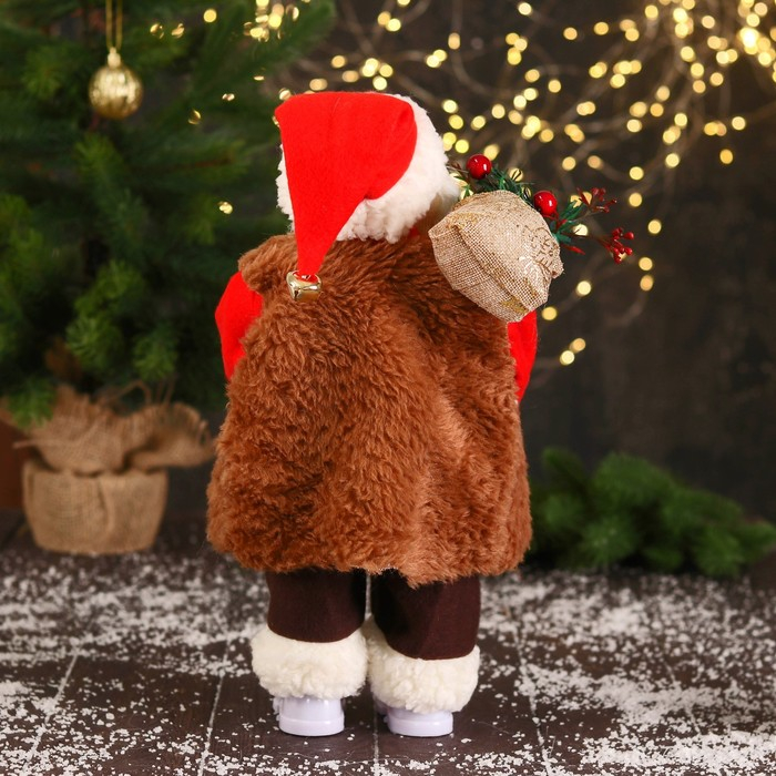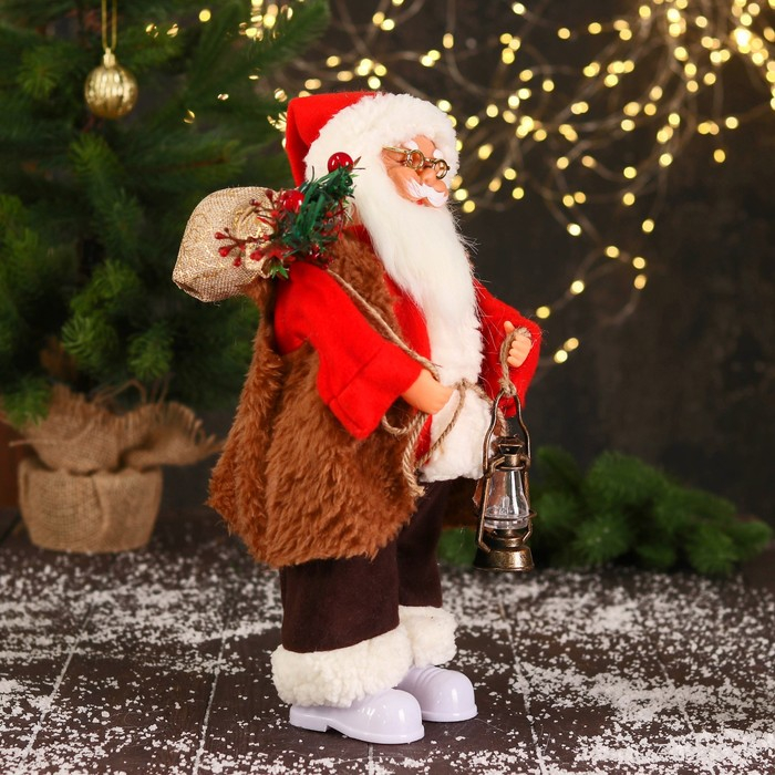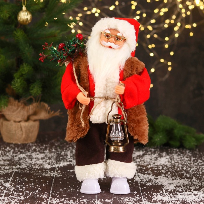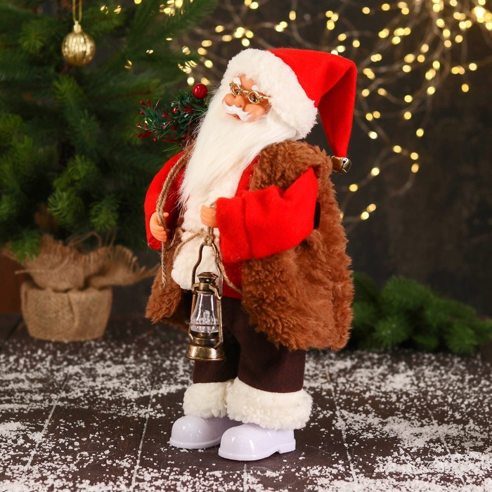 Дед Мороз "В красном тулупе, с фонариком" двигается, ботинки светятся, 17х35 см