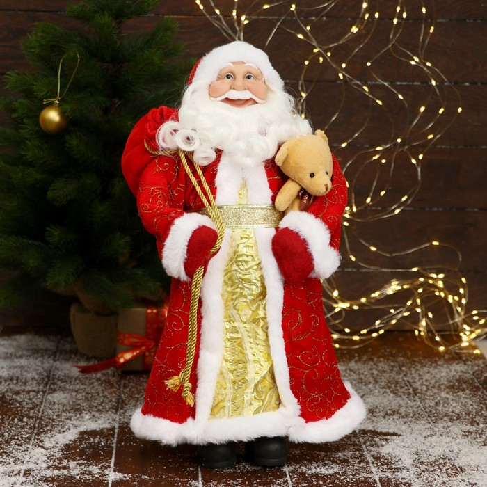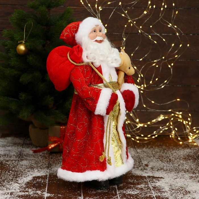 Дед Мороз "В красной подпоясанной шубе, с подарками" 45х23 см