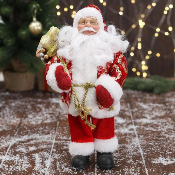 Дед Мороз "В красной шубе с подвязкой, с подарками" 16х30 см