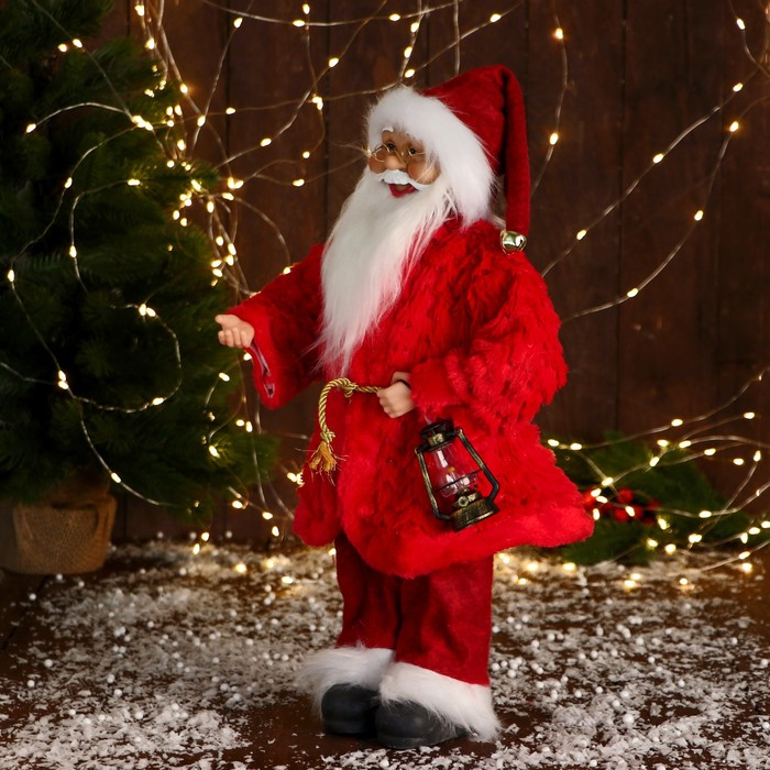 Дед Мороз "В красной шубе с пояском, с фонариком" 25х45 см