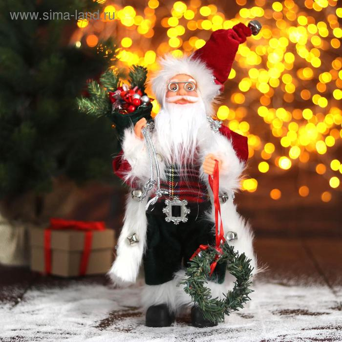 Дед Мороз "В красной шубке с новогодним венком" 16х30 см