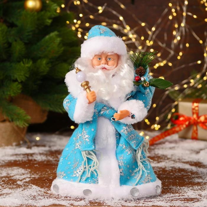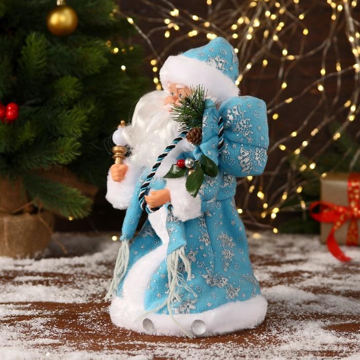 Дед Мороз "В синей шубке с подарками" двигается, с подсветкой, 30 см