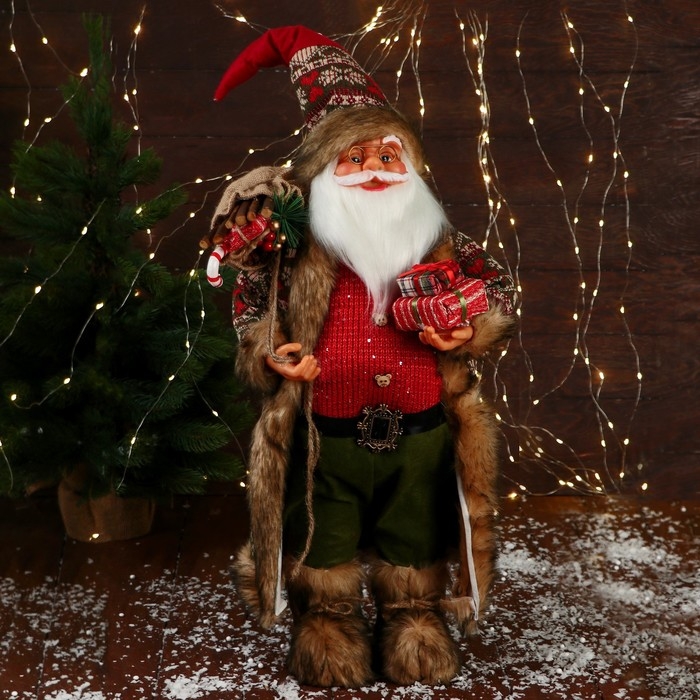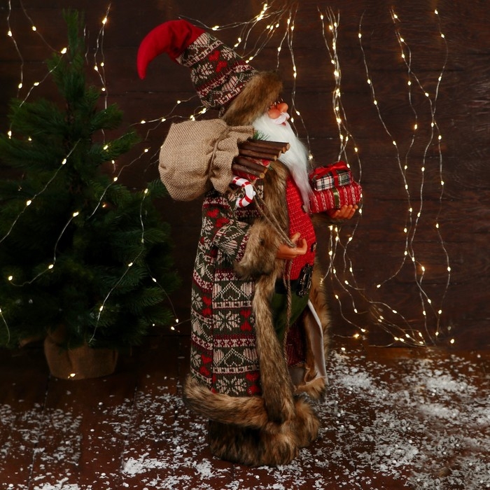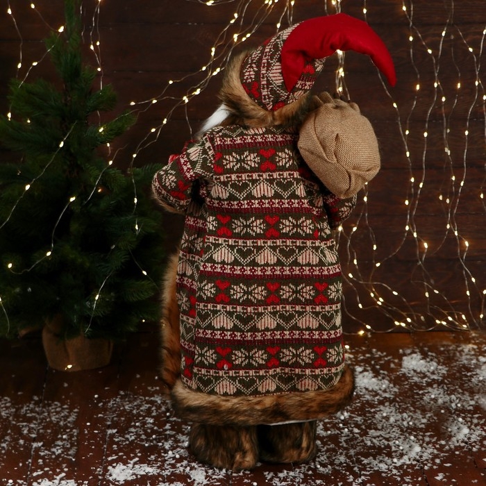Дед Мороз "В вязаном жилете, с подарками" 60 см, красный