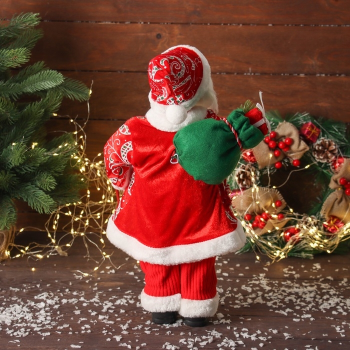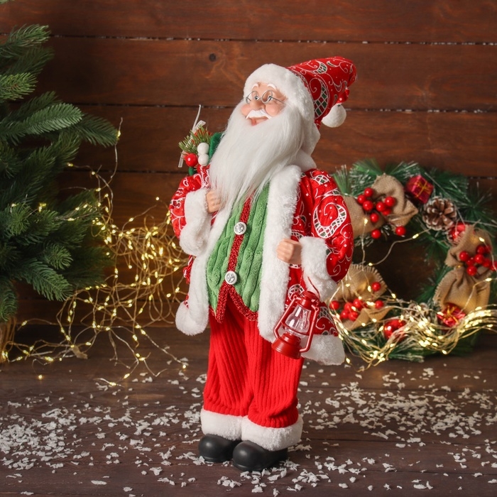 Дед Мороз "В жилете и с фонарём" двигается, 45х22 см, красно-зелёный