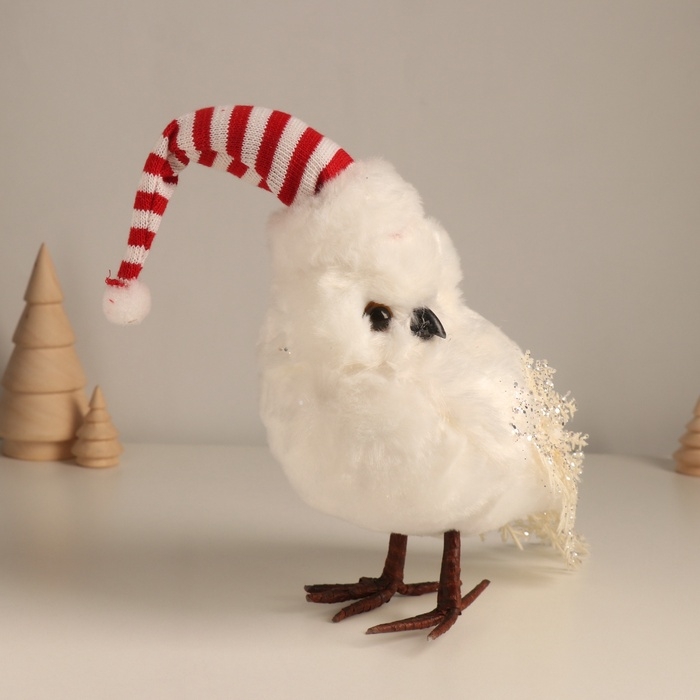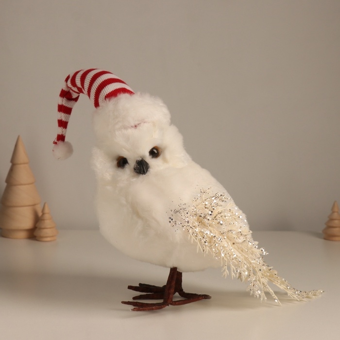 Декор "Белая совушка в полосатом колпаке" 18х10х22 см