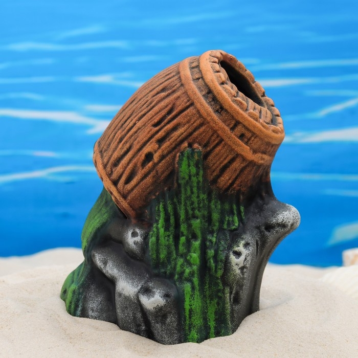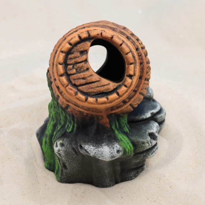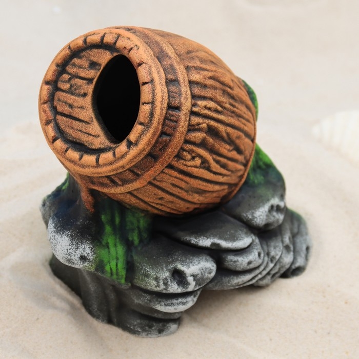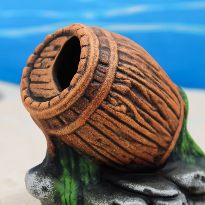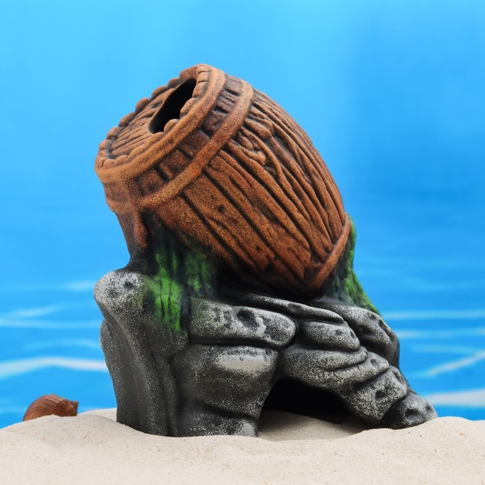 Декор для аквариума "Бочка на камнях", керамический, 13 x 10 x 17 см