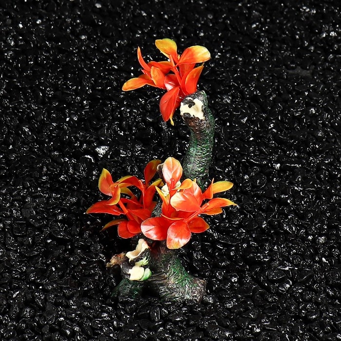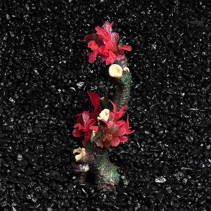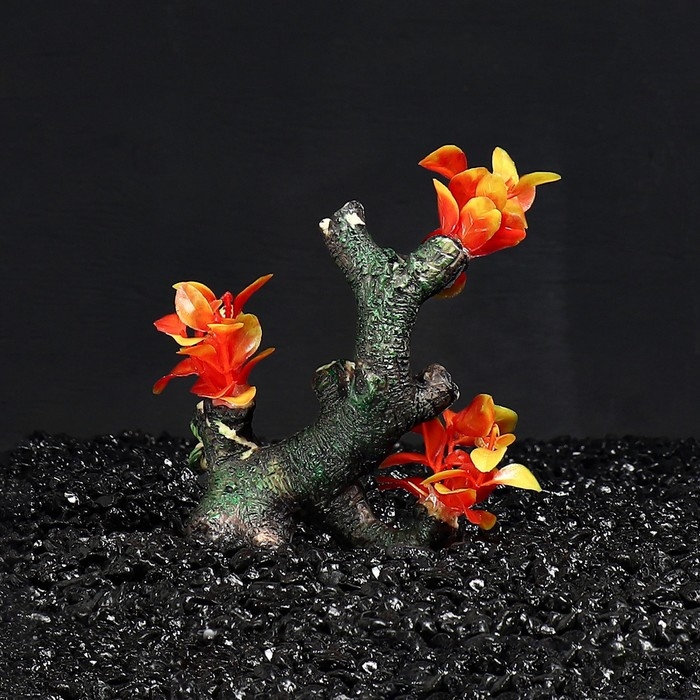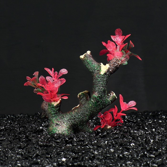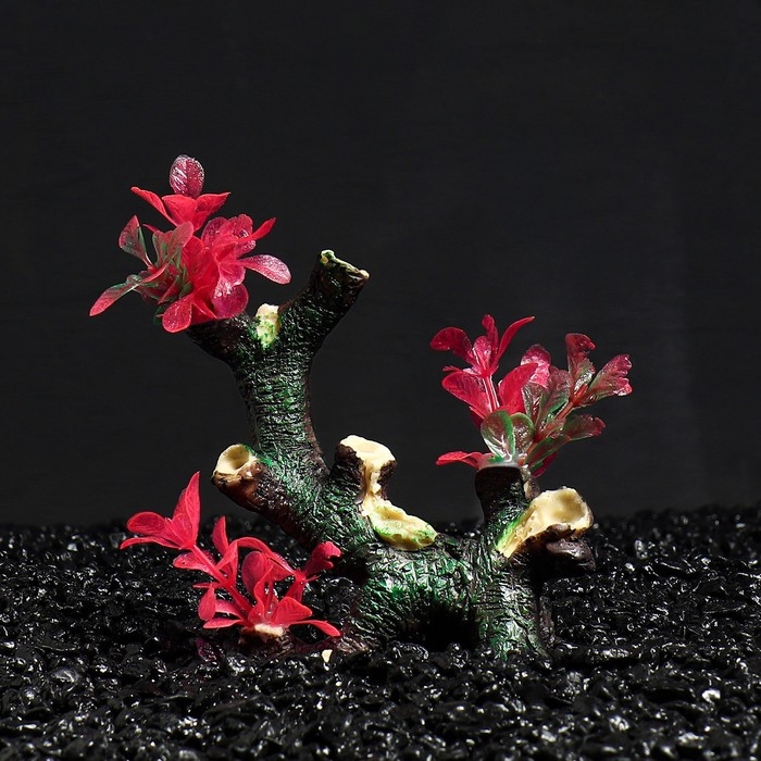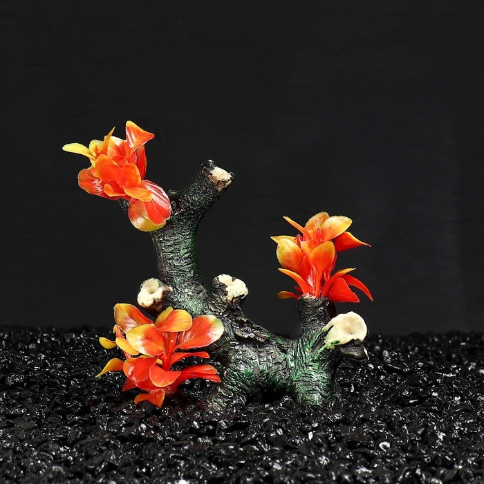 Декор для аквариума "Коряга" с оранжево-розовыми растениями, 15 х 7 х 16,5 см