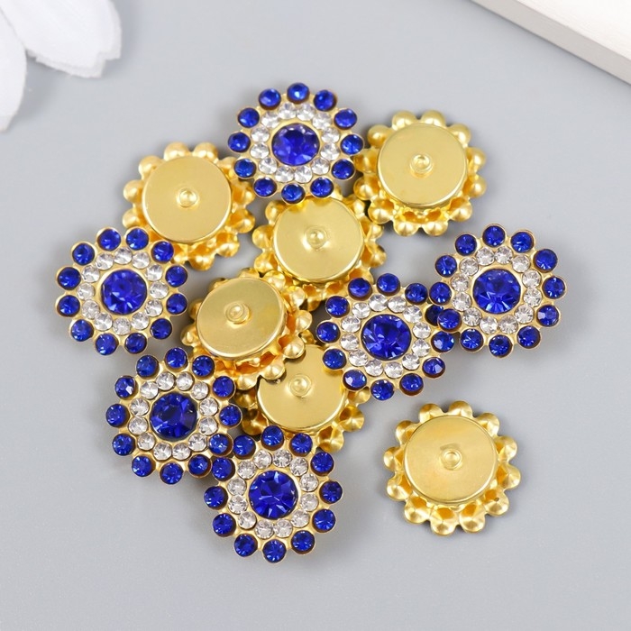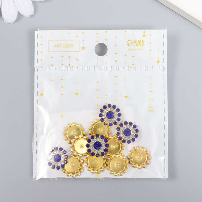 Декор для творчества пластик "Цветок-солнце синий" набор 12 шт 1,4х1,4 см