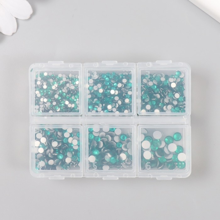 Декор для творчества стекло "Стразы. Голубой циркон" d=2-4,8 мм н-р 1188 шт 6х8х1,5 см