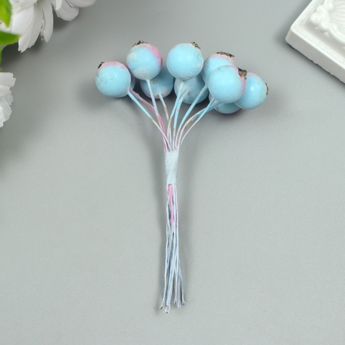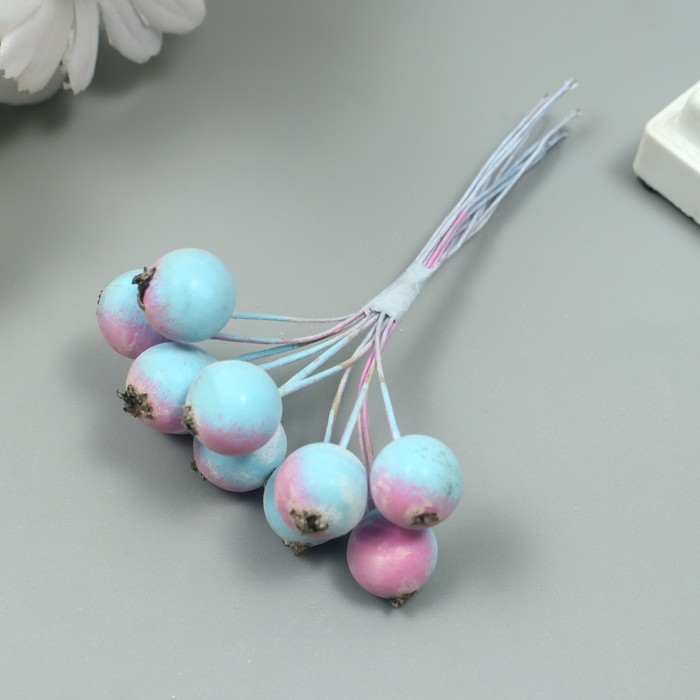 Декор для творчества "Ягодка рябины" 1 букет=10 ягод сиренево-голубой иней 10х1,5 см