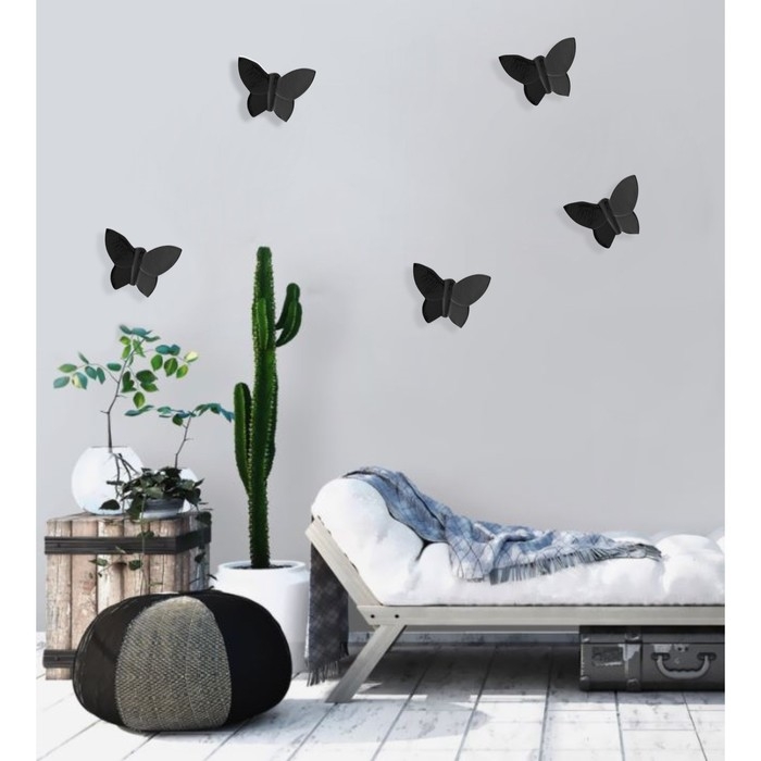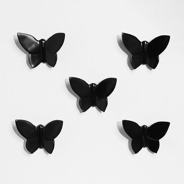 Декор настенный "Бабочки" 7,5 x 10,5 см, черный, (набор 5 шт)