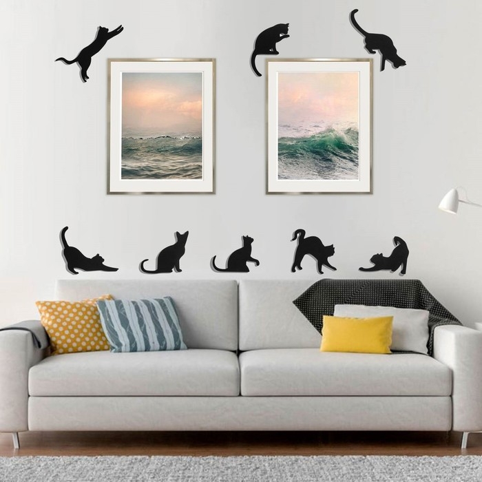 Декор настенный "Кошки", 8 элементов, 6.5-7-14х12-5-18.5 см
