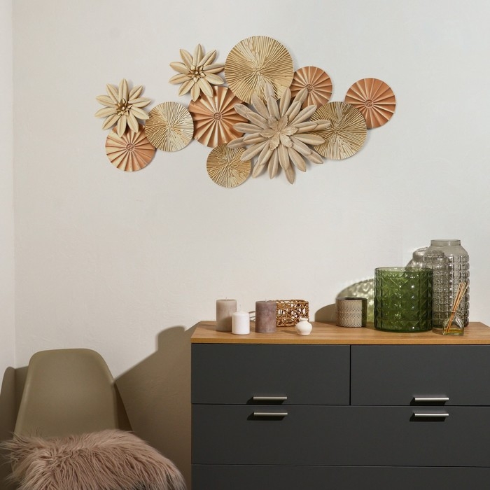 Декор настенный металл "Цветы в пустыне" золото 120х7х60 см