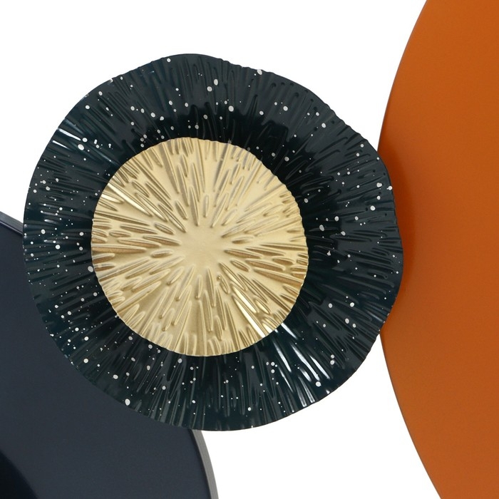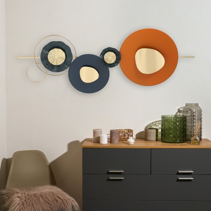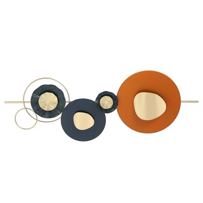 Декор настенный металл "Геометрическая симфония с цветами" сине-орнанжевый 7х50х150 см