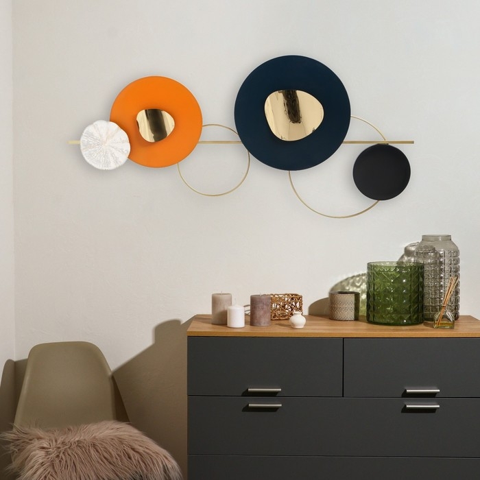Декор настенный металл "Геометрическая симфония" сине-оранжевый 7х68х150 см