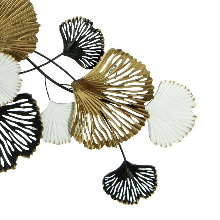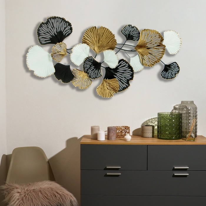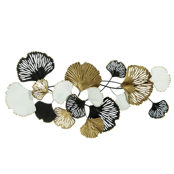 Декор настенный металл "Лепестки" белые и чёрные с золотом 57,5х6,5х121 см