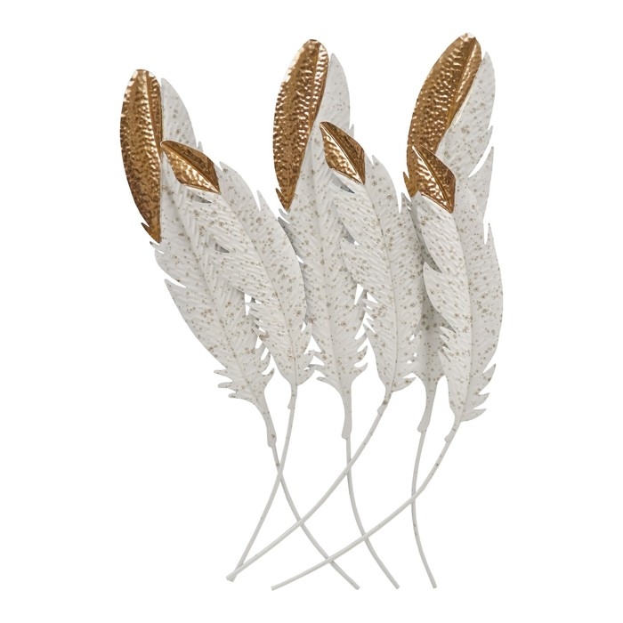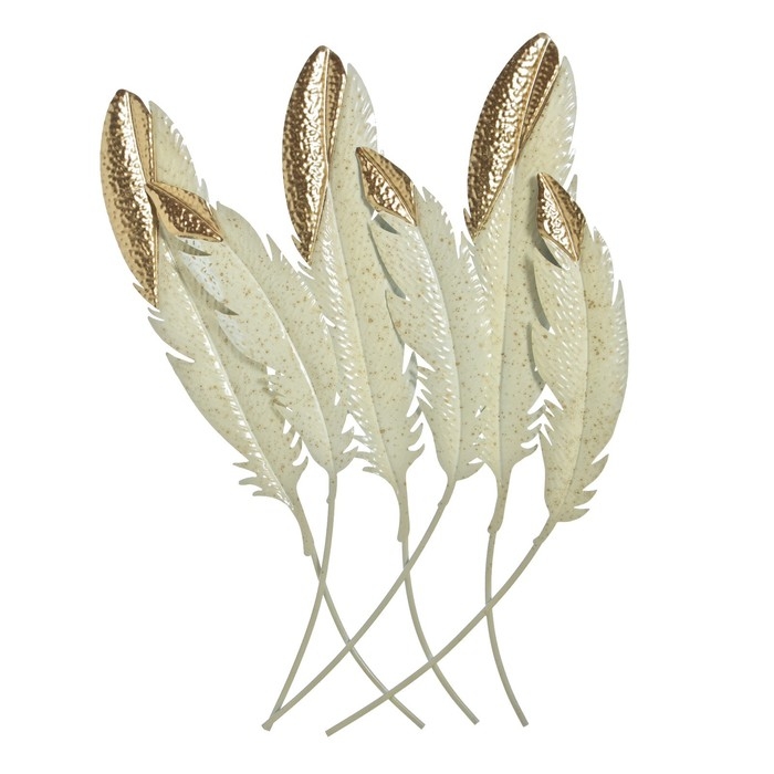 Декор настенный металл "Пёрышки" белые с золотом 92х60х3 см