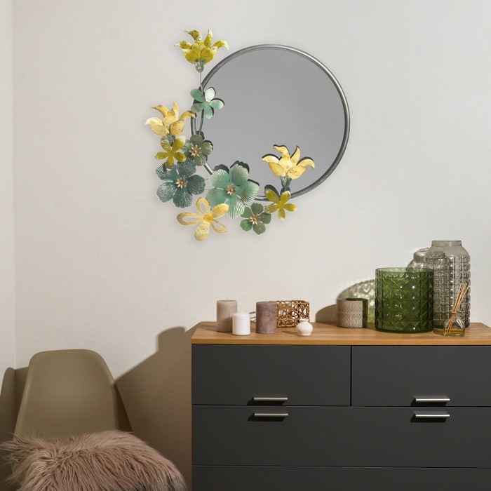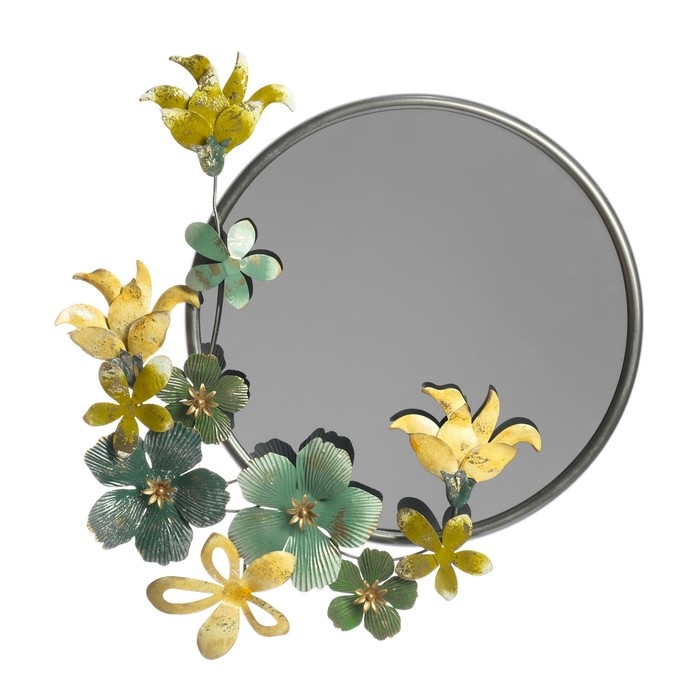 Декор настенный металл с зеркалом "Цветочная феерия" 67,9х64,8х5,7 см