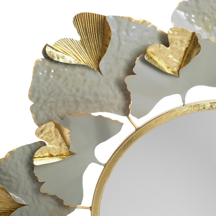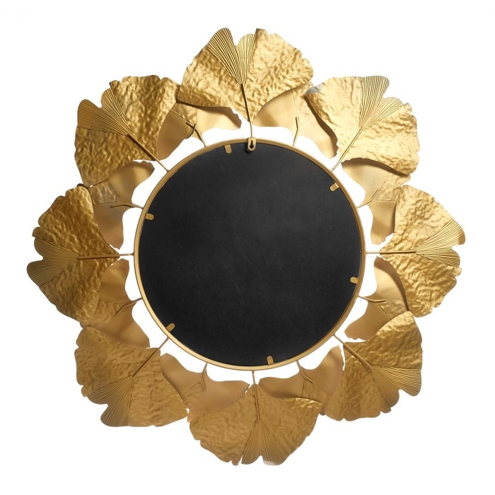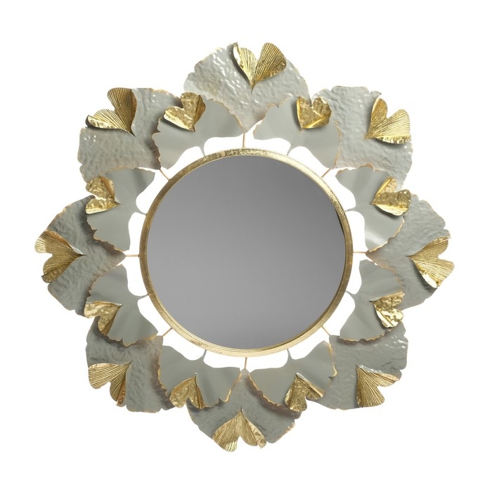 Декор настенный металл с зеркалом "Цветок из веерных листьев" серо-золотой 98,4х98,4х6,4 см 104238