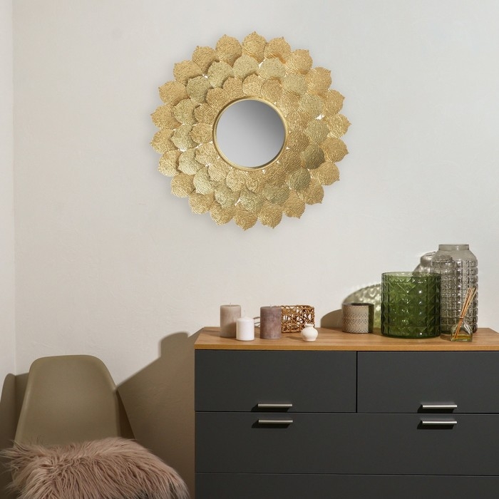 Декор настенный металл с зеркалом "Цветок. Сахара" золото 78,7х78,7х3,8 см