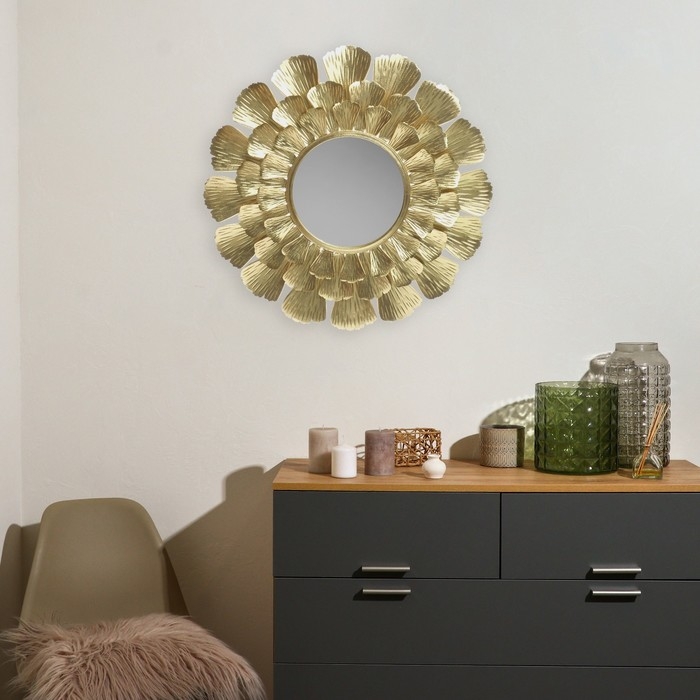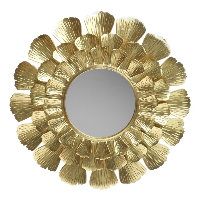 Декор настенный металл с зеркалом "Цветок. Веер" золото 94х94х7 см