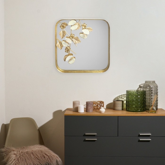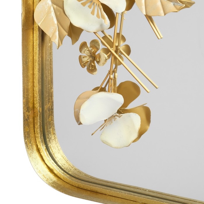 Декор настенный металл с зеркалом "Орхидеи в листьях" 55,2х55,2х8,3 см