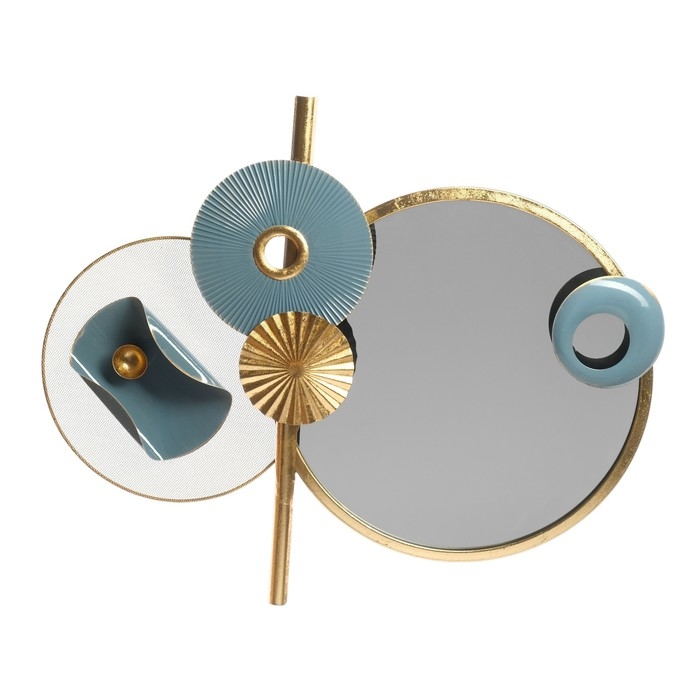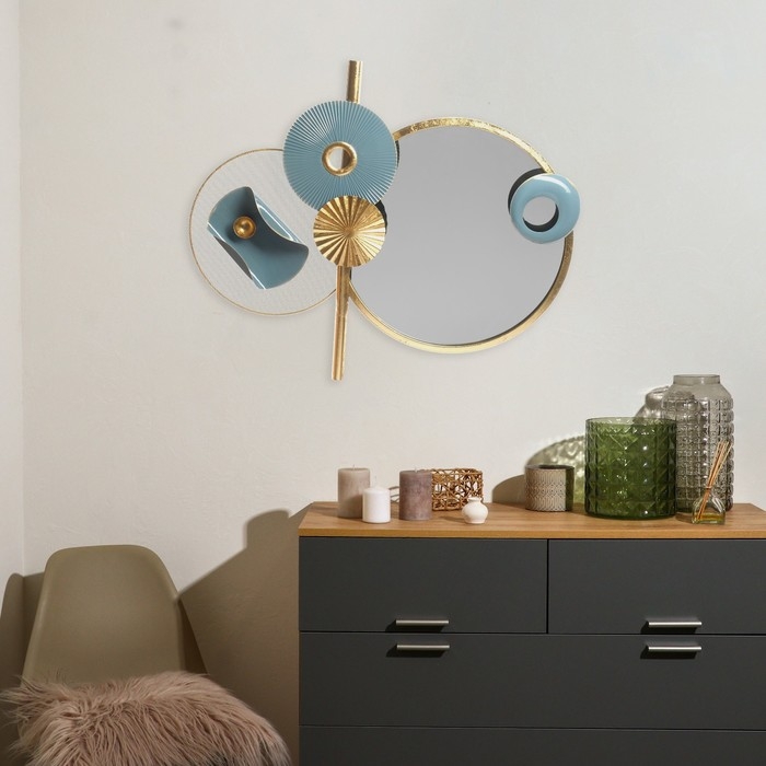 Декор настенный металл с зеркалом "Стиль. Круги" сине-золотой 65,4х83,8х8,3 см