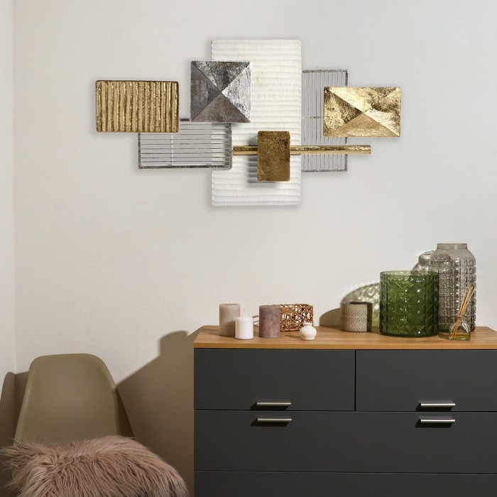 Декор настенный металл "Строгость линий" золото с серебром 90,8х50,2х5,7 см