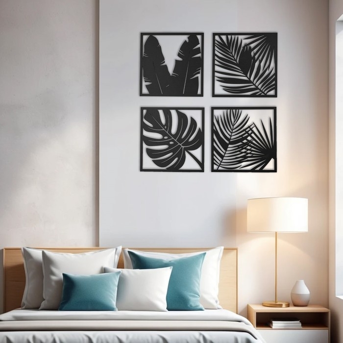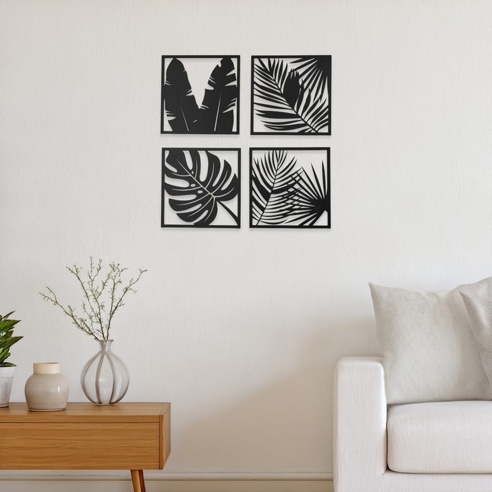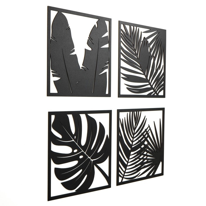 Декор настенный, панно для интерьера из дерева "Листья", 4 модуля 31 х 31 см