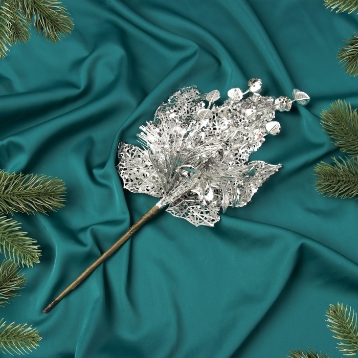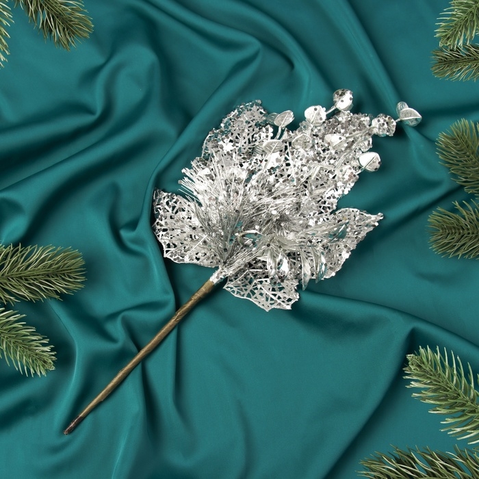 Декор "Новогодняя грация" резные листья, 33х17 см, серебро