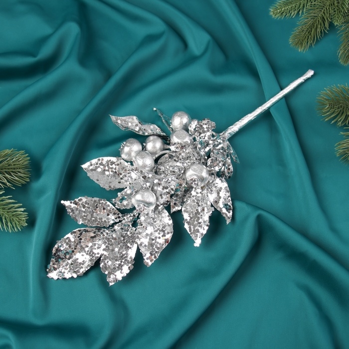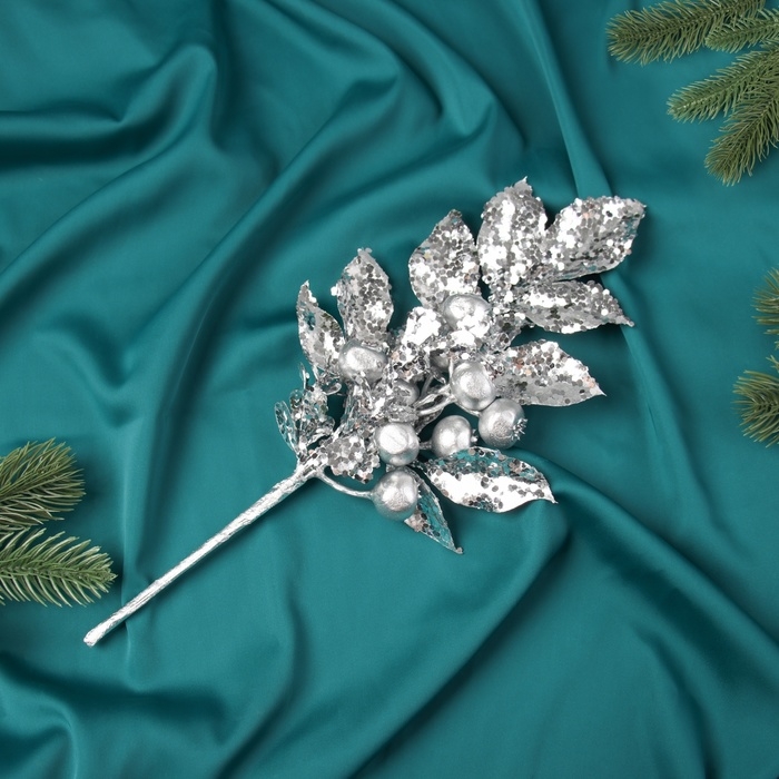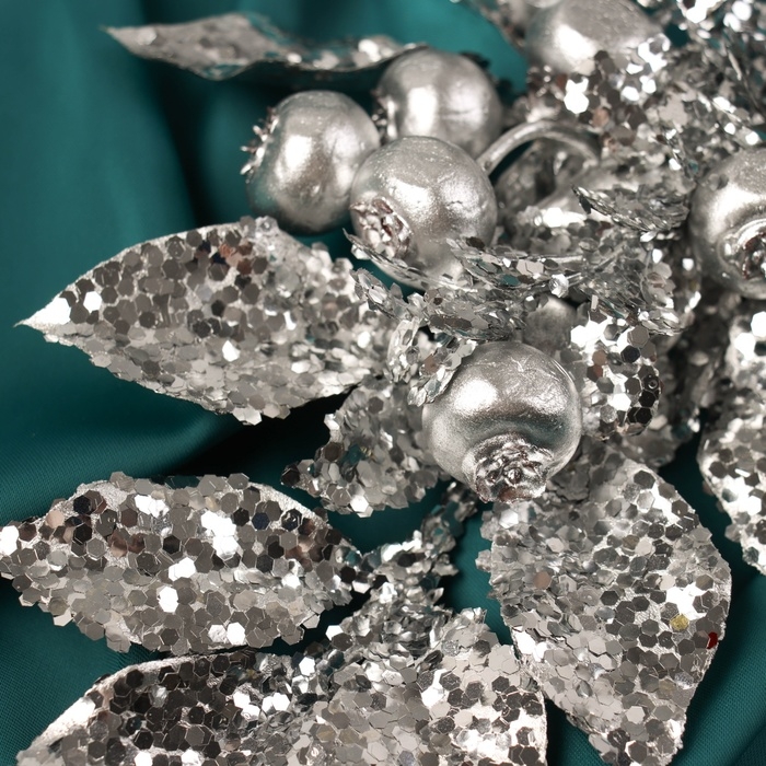Декор "Новогодняя грация" веточка ягоды, 30х12 см, серебро