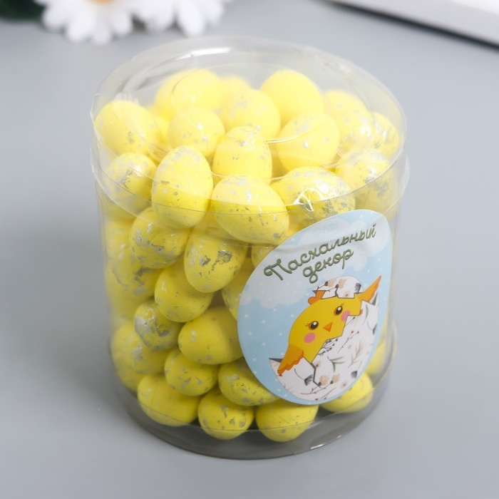 Декор пасхальный "Яйцо - серебристая крапинка" набор 100 шт жёлтый 1,5х1,8 см, 8х8х8 см