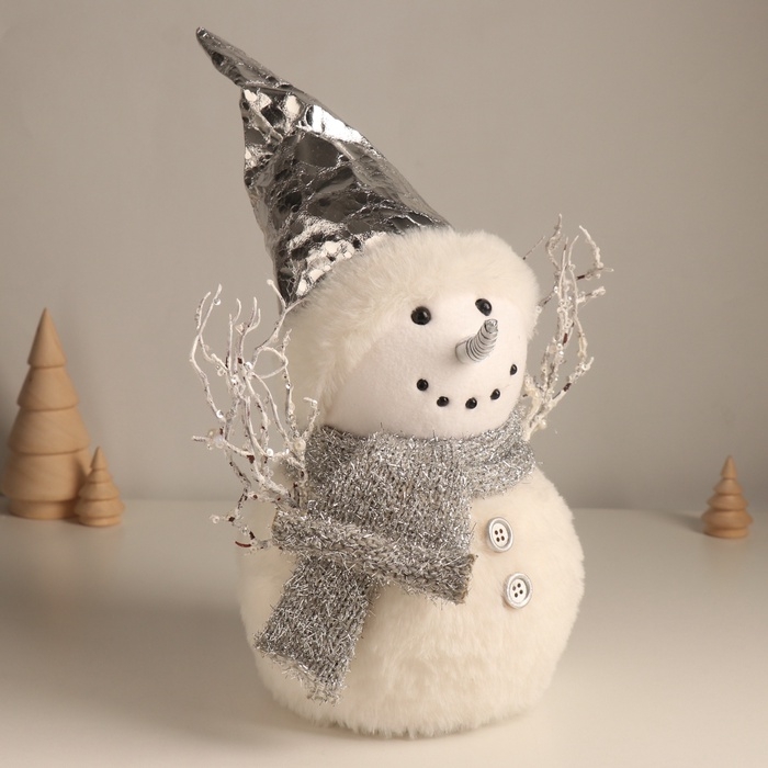 Декор "Снеговик в серебристом колпаке" 24х14х32 см