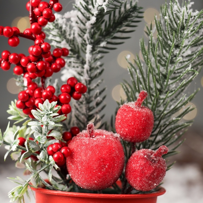 Декор "Яркий праздник, в горшочке" хвоя ягодки, 20х7 см