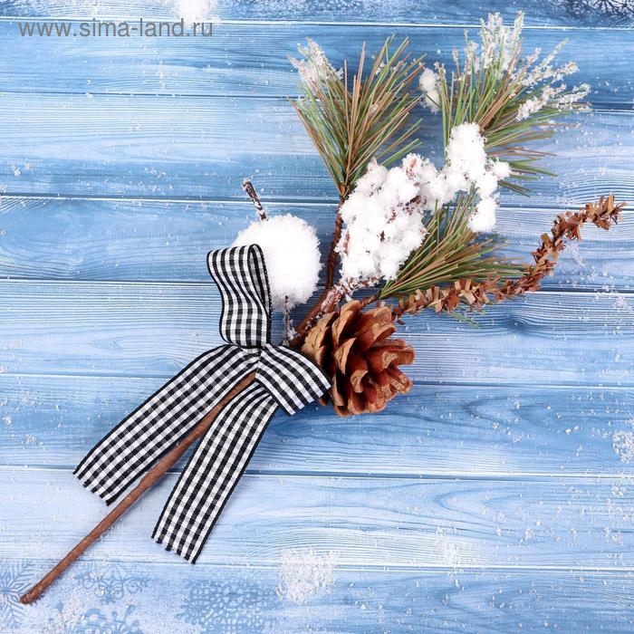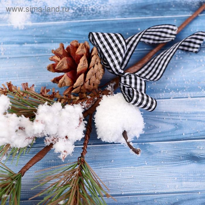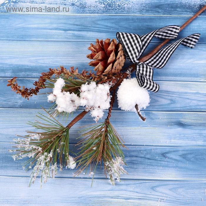 Декор "Зимнее очарование" шишка яблоко ягоды в снегу бантик 29 см