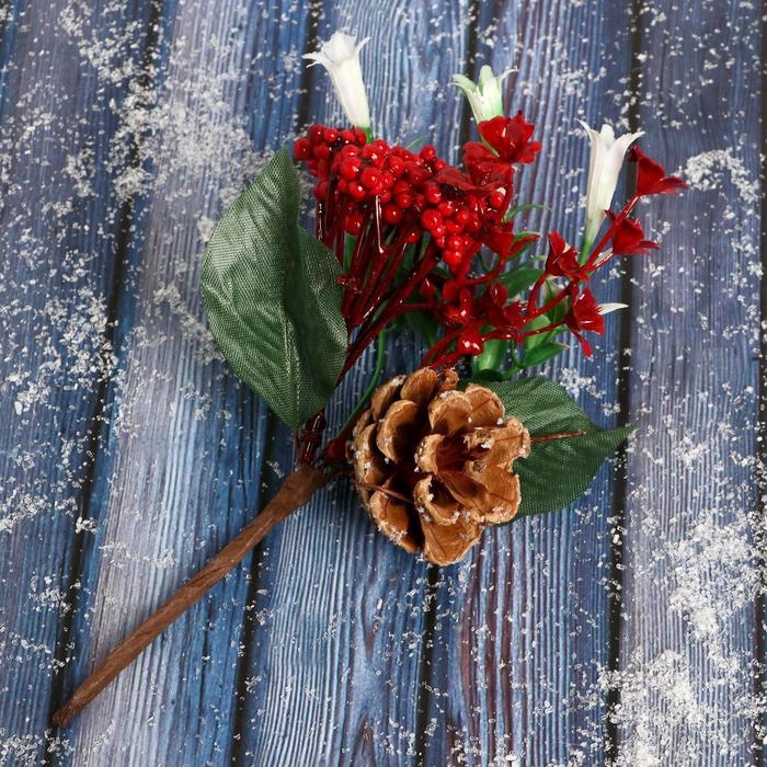 Декор "Зимнее очарование" шишка ягоды цветочки, 15 см