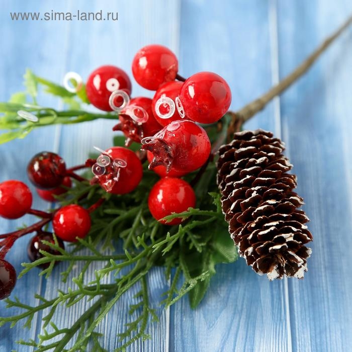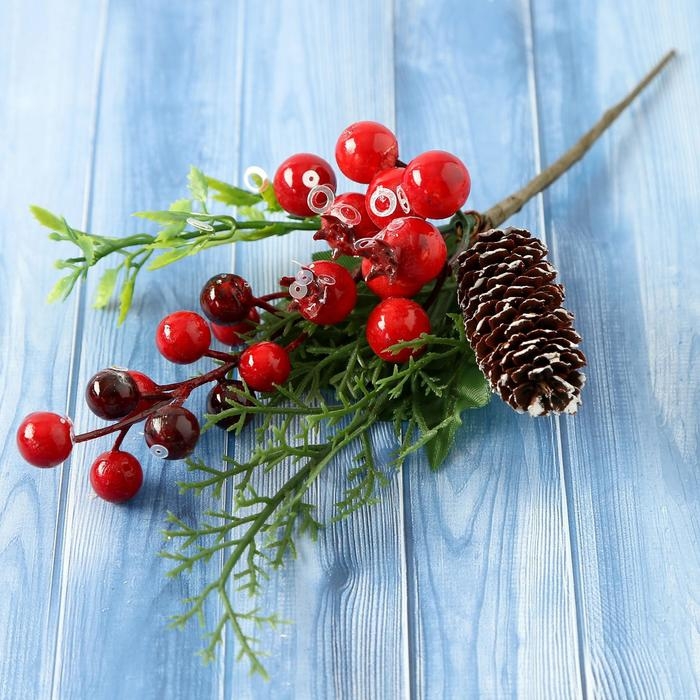 Декор "Зимнее очарование" шишка ягоды веточки зелени, 20 см