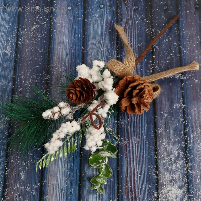Декор "Зимнее очарование" ягоды в белом шишки хвоя, 26 см