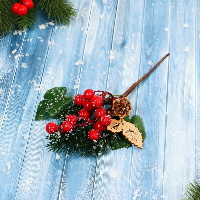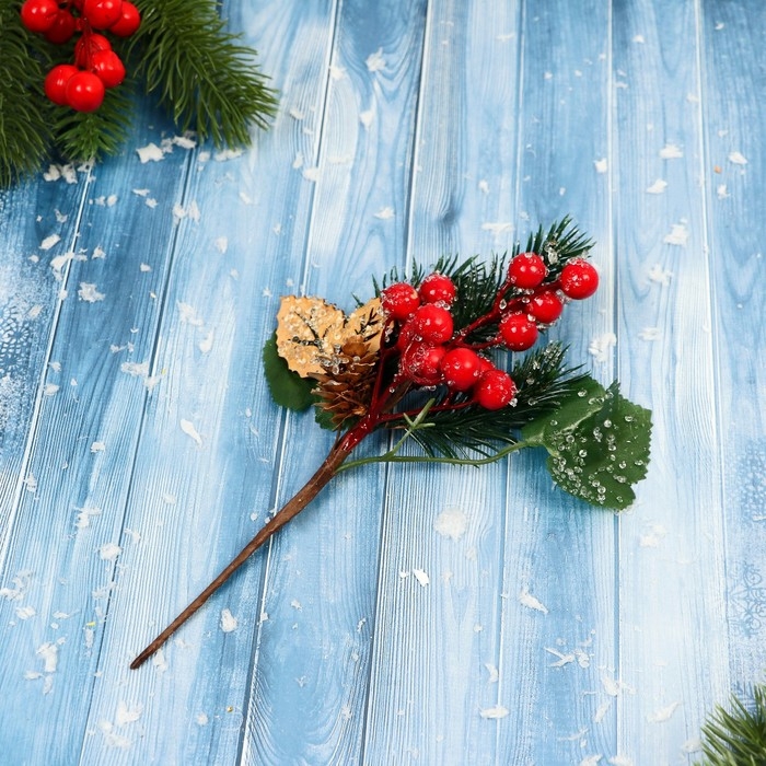 Декор "Зимние грезы" ягоды шишка хвоя листья, 22 см