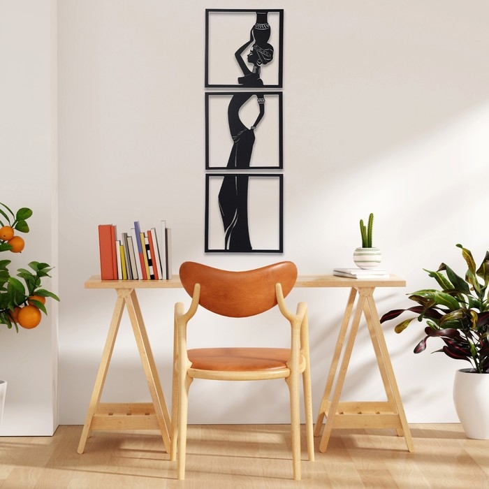 Панно настенное - это прекрасный способ добавить в интерьер вашего дома неповторимый декор. Это модульная картина, которая может использоваться как настенная декорация для комнаты, гостиной, спальни или кухни. Оригинальный дизайн декорации с изображением девушки с кувшином придаст изюминку вашему дому, привнесёт чарующую атмосферу в ваш дом. Модули, выполненные из МДФ (древесноволокнистой плиты), можно соединять между собой, чтобы создавать уникальные и красивые настенные декорации. Использование древесных модулей в декоре стен позволяет создать атмосферу уюта в вашем доме. Подвесная декорация подойдет для дома в любом стиле: будь то скандинавский, лофт или эко. В зависимости от поверхности стен для крепления декора можно использовать двухсторонний скотч, который идёт в комплекте, жидкие гвозди или горячий клей.