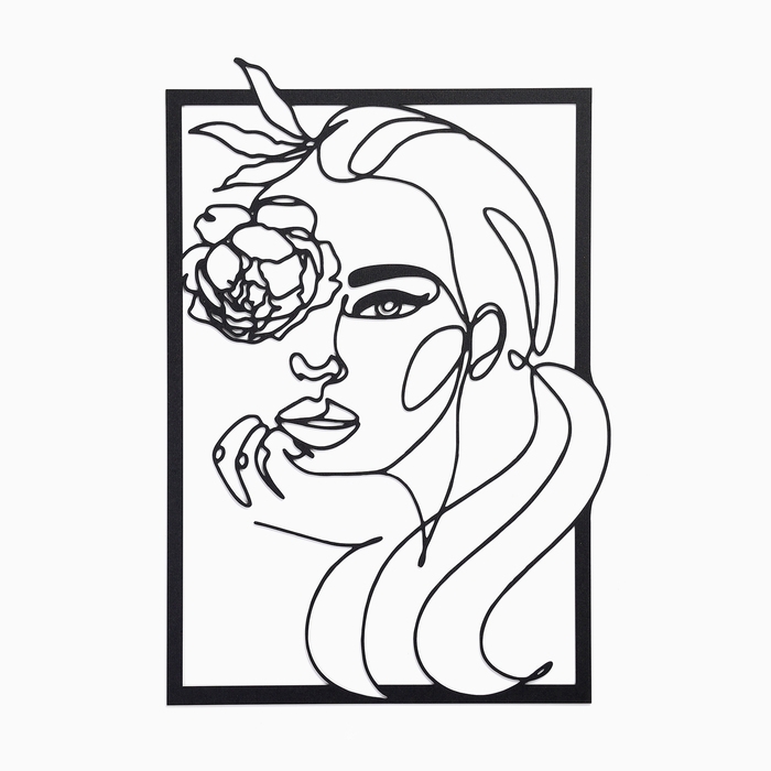 Декорация настенная для интерьера, панно на стену из дерева "Девушка с розой", 40 х 59 см