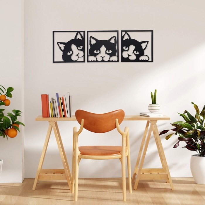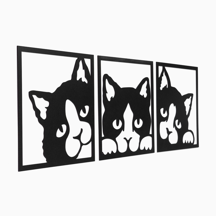 Декорация настенная для интерьера, панно на стену из дерева "Кошки", 3 модуля 34 х 34 см