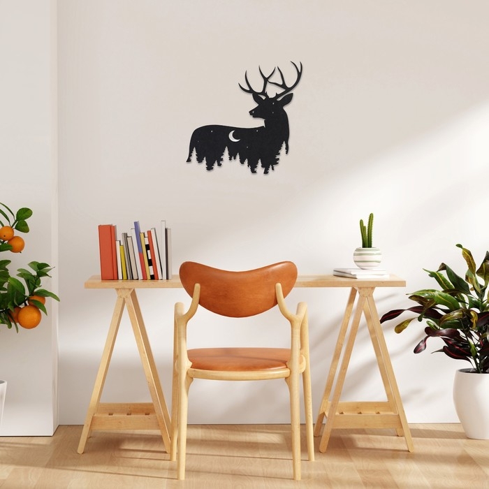 Декорация настенная для интерьера, панно на стену из дерева "Олень", 37 х 36 см