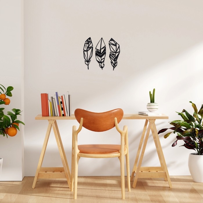 Декорация настенная для интерьера, панно на стену из дерева "Перья", 3 модуля