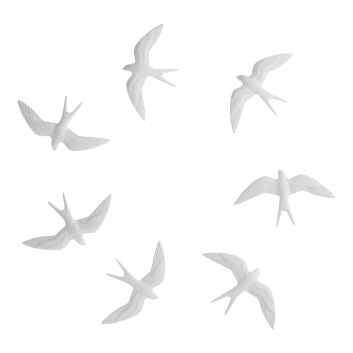Декорация настенная, гипсовое панно "Ласточки", 7 шт, 18 х 11 см, белые